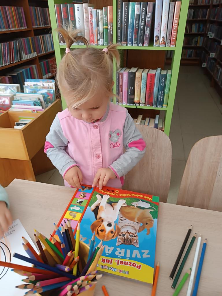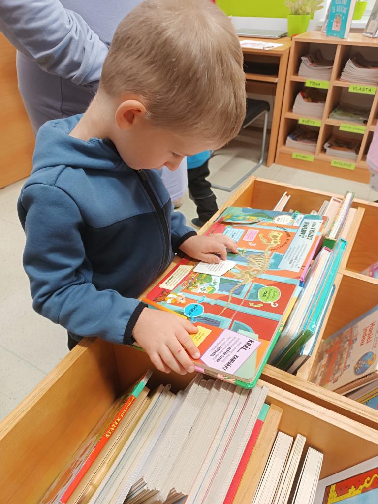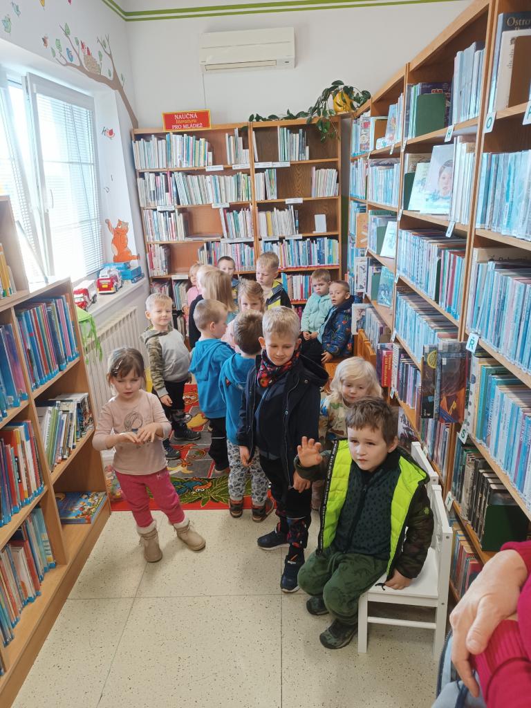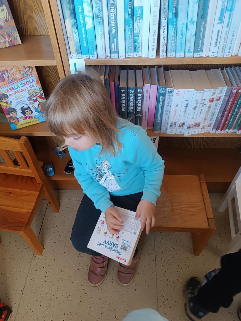 Tento týden se obě třídy vydaly na návštěvu místní knihovny. Paní knihovnice děti seznámila s knihovnou i s knihami a přečetla jim úryvek z knihy „Barevná příšerka“. Poté si děti podle své volby vybíraly a prohlížely knihy. Měly také připravené omalovánky k vybarvování a společenské hry.