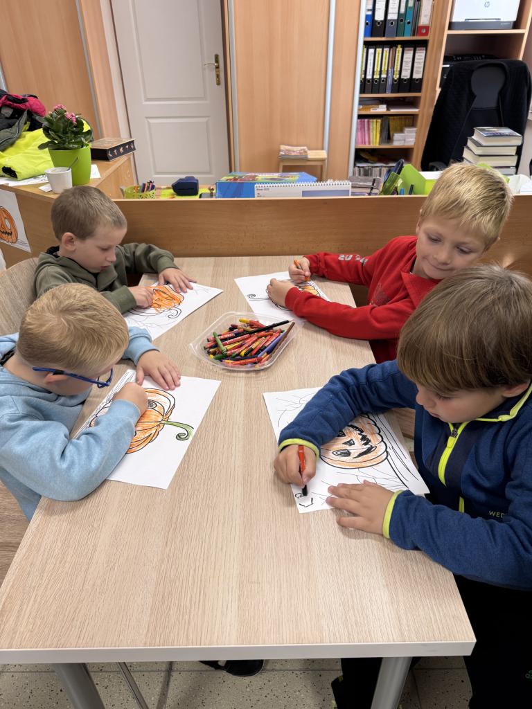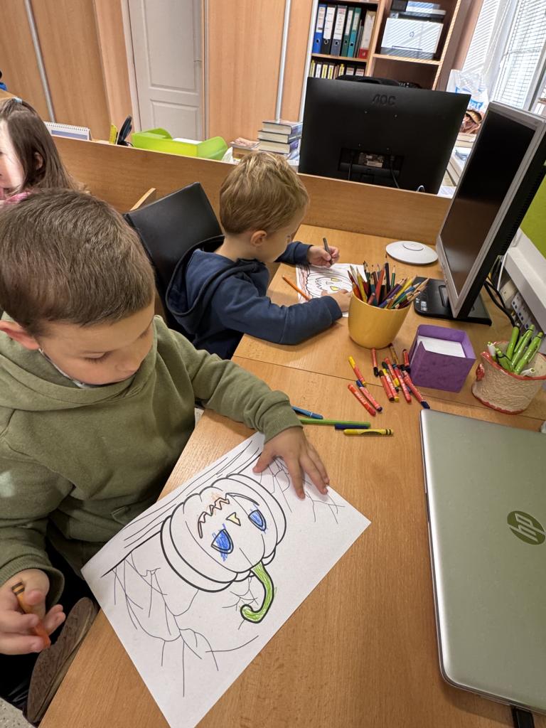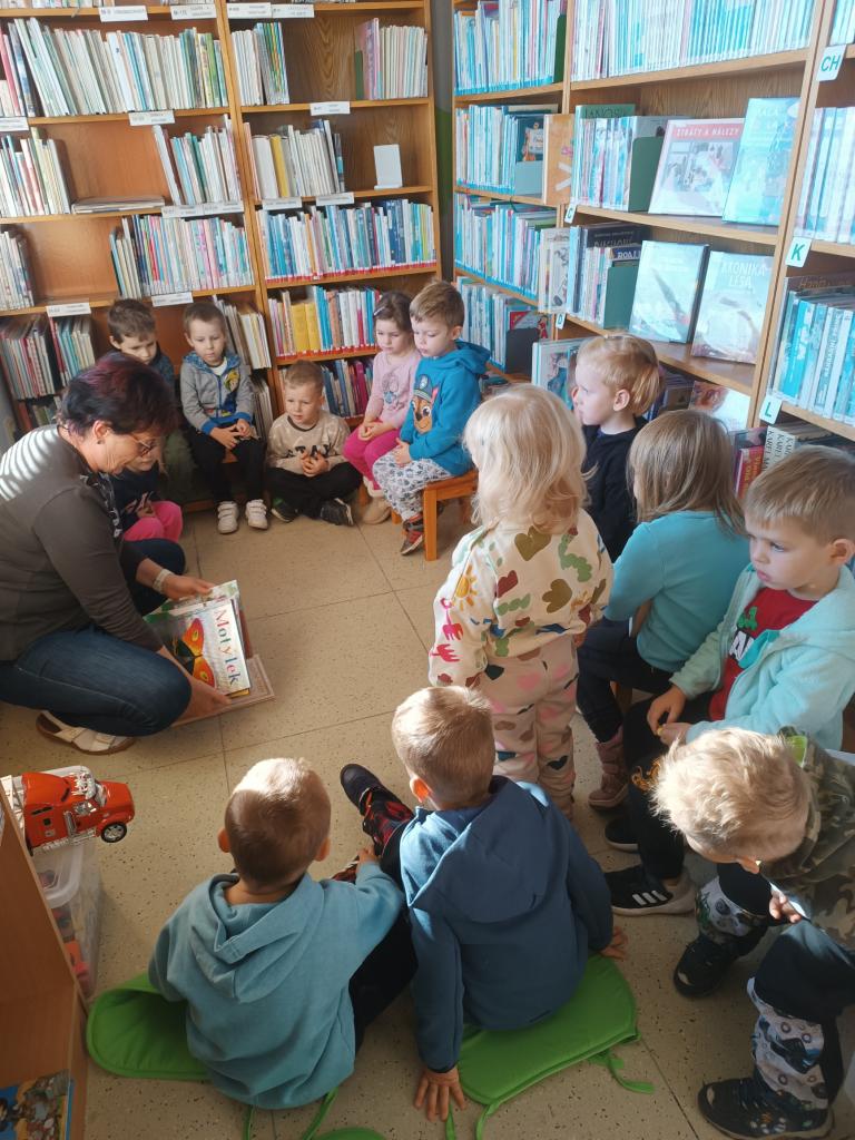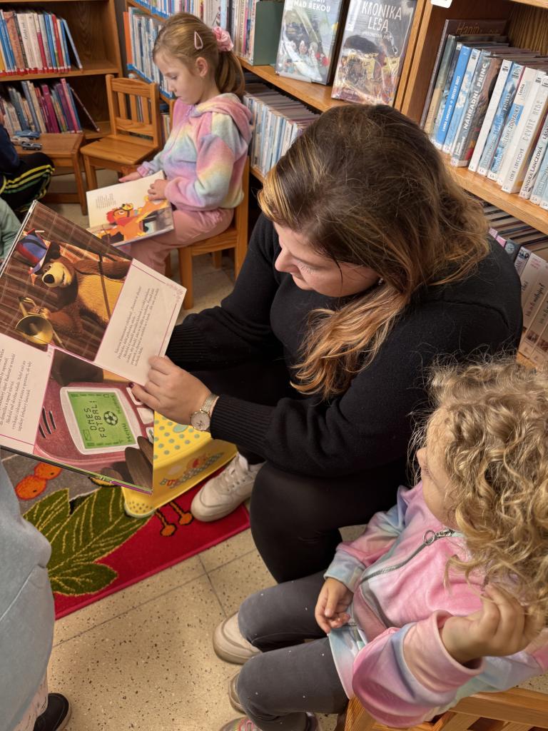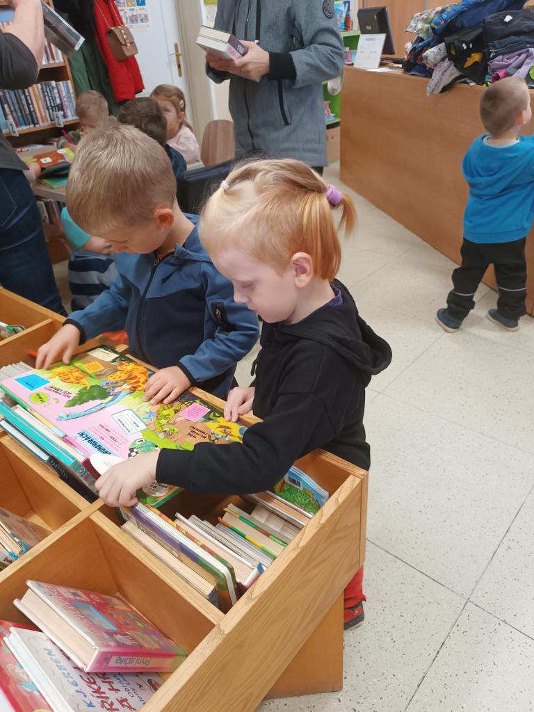 Tento týden se obě třídy vydaly na návštěvu místní knihovny. Paní knihovnice děti seznámila s knihovnou i s knihami a přečetla jim úryvek z knihy „Barevná příšerka“. Poté si děti podle své volby vybíraly a prohlížely knihy. Měly také připravené omalovánky k vybarvování a společenské hry.