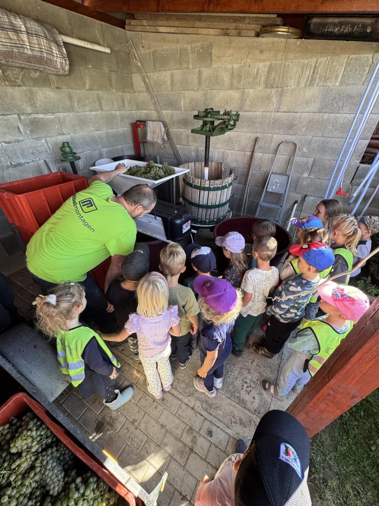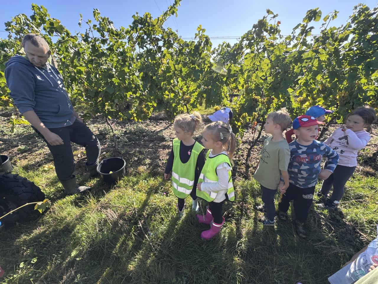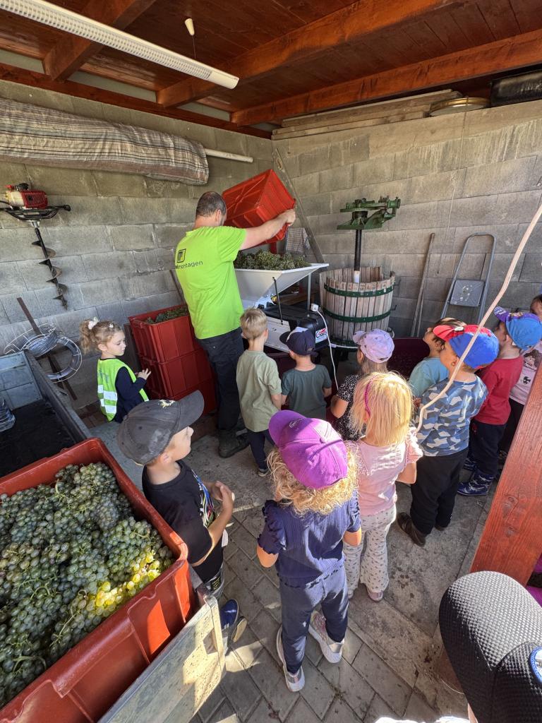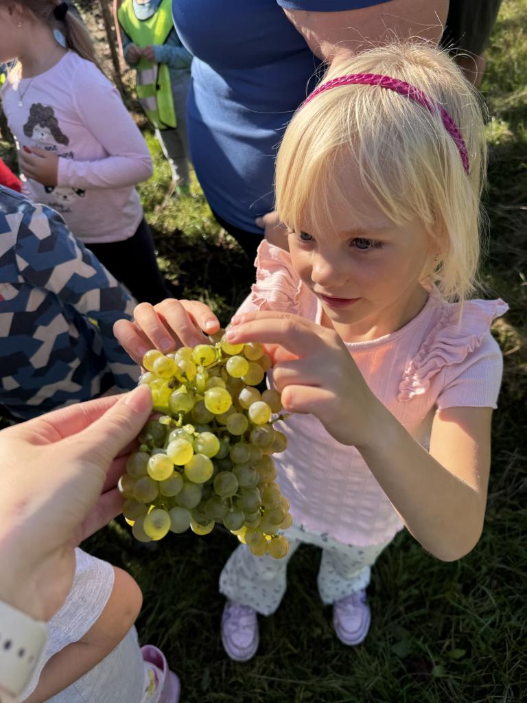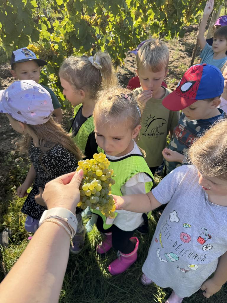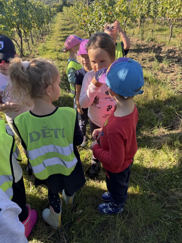 S dětmi jsme se vypravili do vinohradu, kde děti na vlastní oči viděly, jak se sbírá hroznové víno a co se s ním dál děje. Dozvěděly se, jak se hrozny zpracovávají, a užily si krásný den mezi vinicemi.